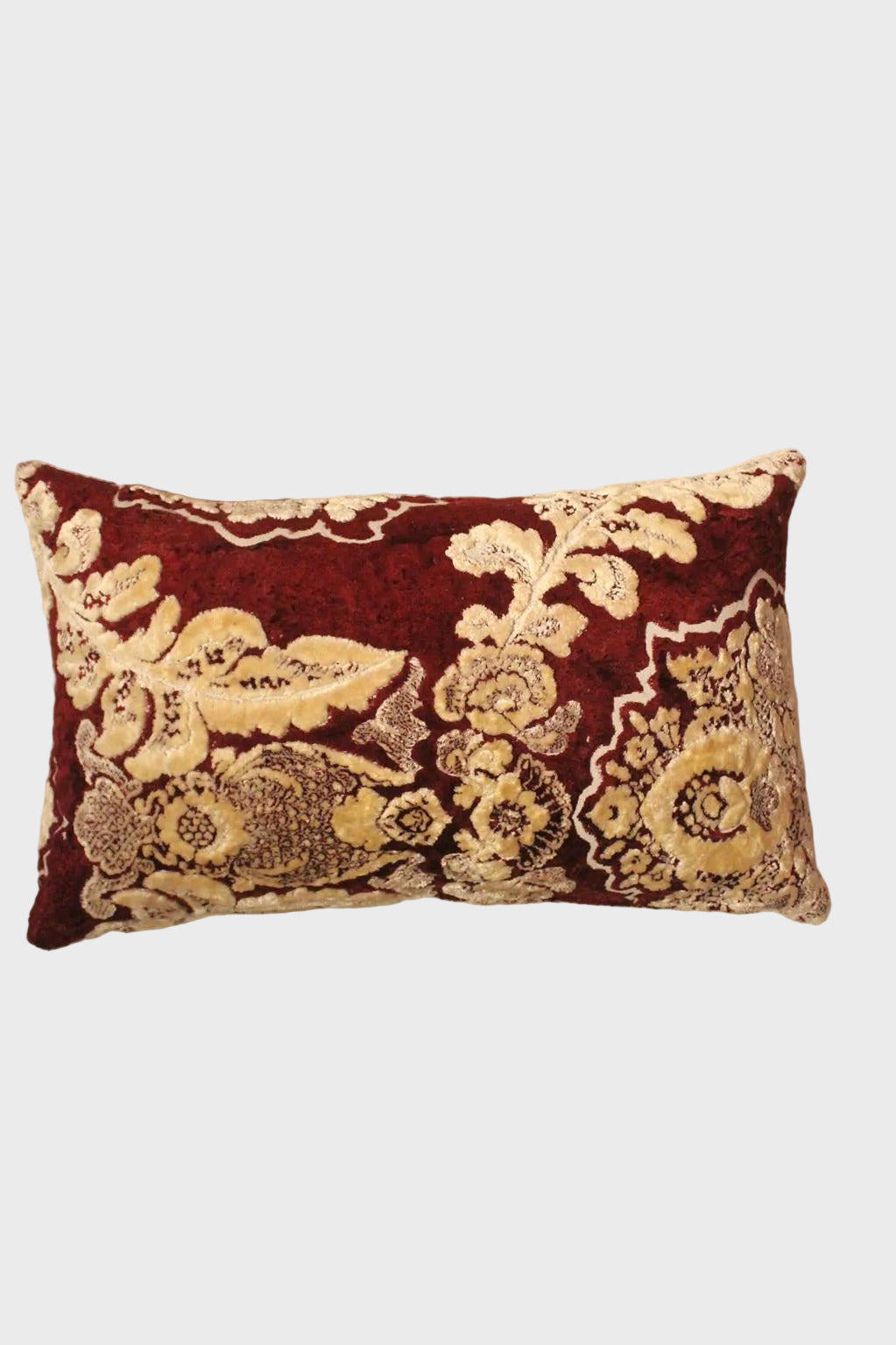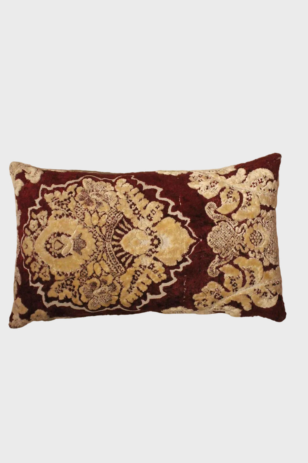 This pillow was made out of a vintage piece of "Mobra" textile. This kind of upholstery fabric with floral designs and a velvet feel has been used -and still is- in traditional moroccan houses, from the humble home to the most luxurious palaces, to decorate extra large reception living rooms.