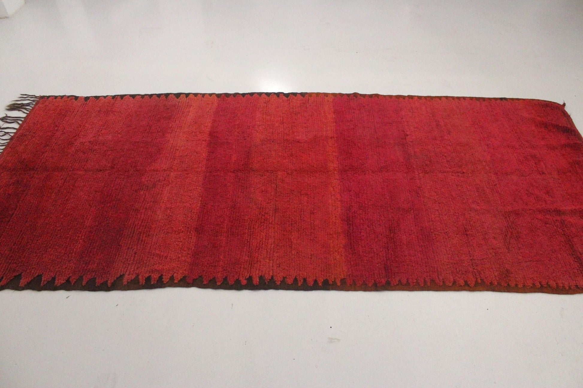 Vintage area moroccan rug - raspberry red - Rehamna - 5.2x12feet / 160x365cm