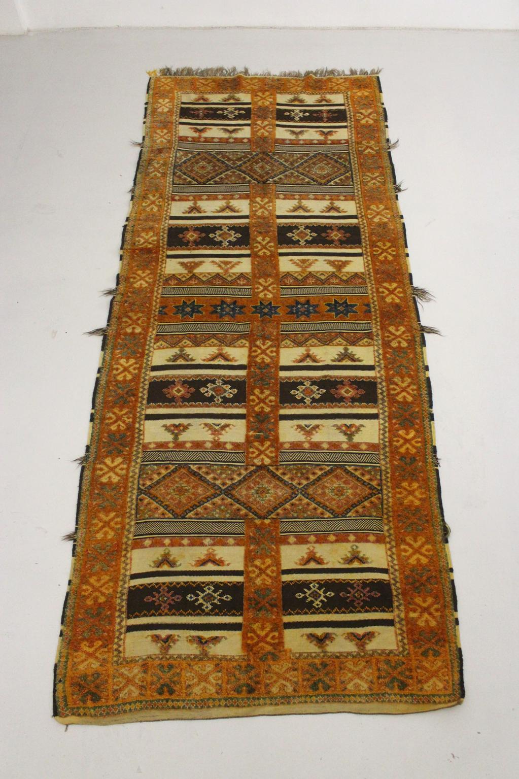 Vintage traditional moroccan rug - honey, blue - Glaoui - 160x400cm / 5.2x13.1feet