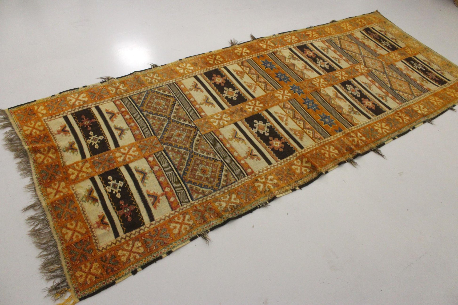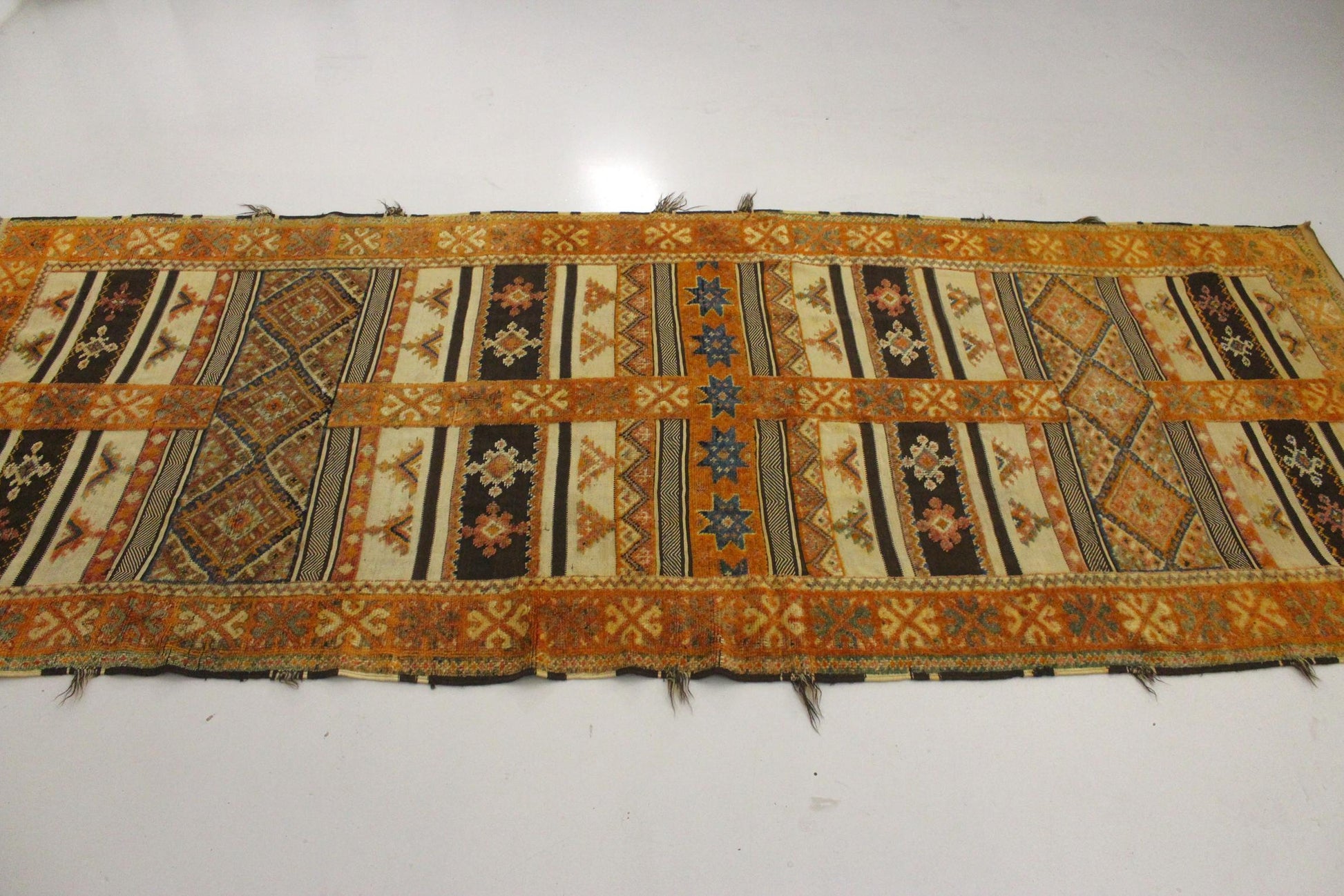 Pictures were taken in my bright and all white studio in Marrakech. They have been edited but colors are accurate. Please take time to check all detailed pictures, so you can see the condition and beautiful work on this rug!